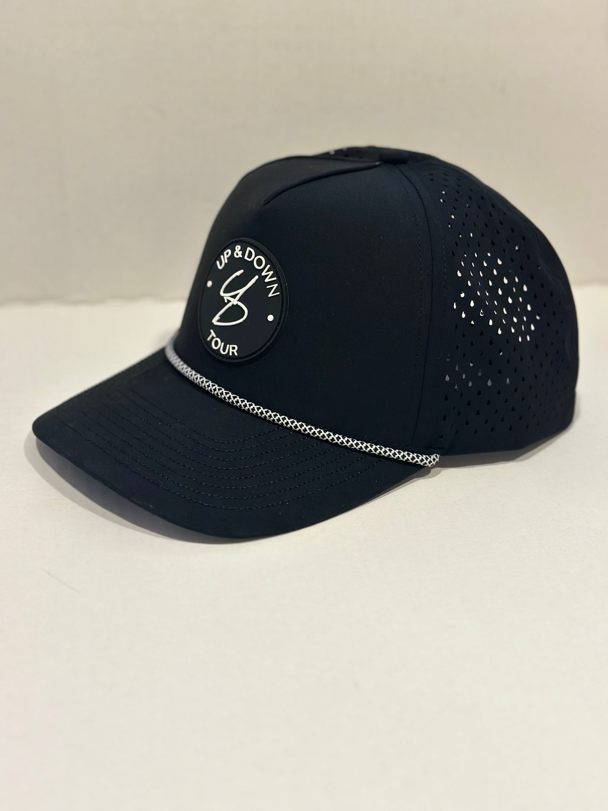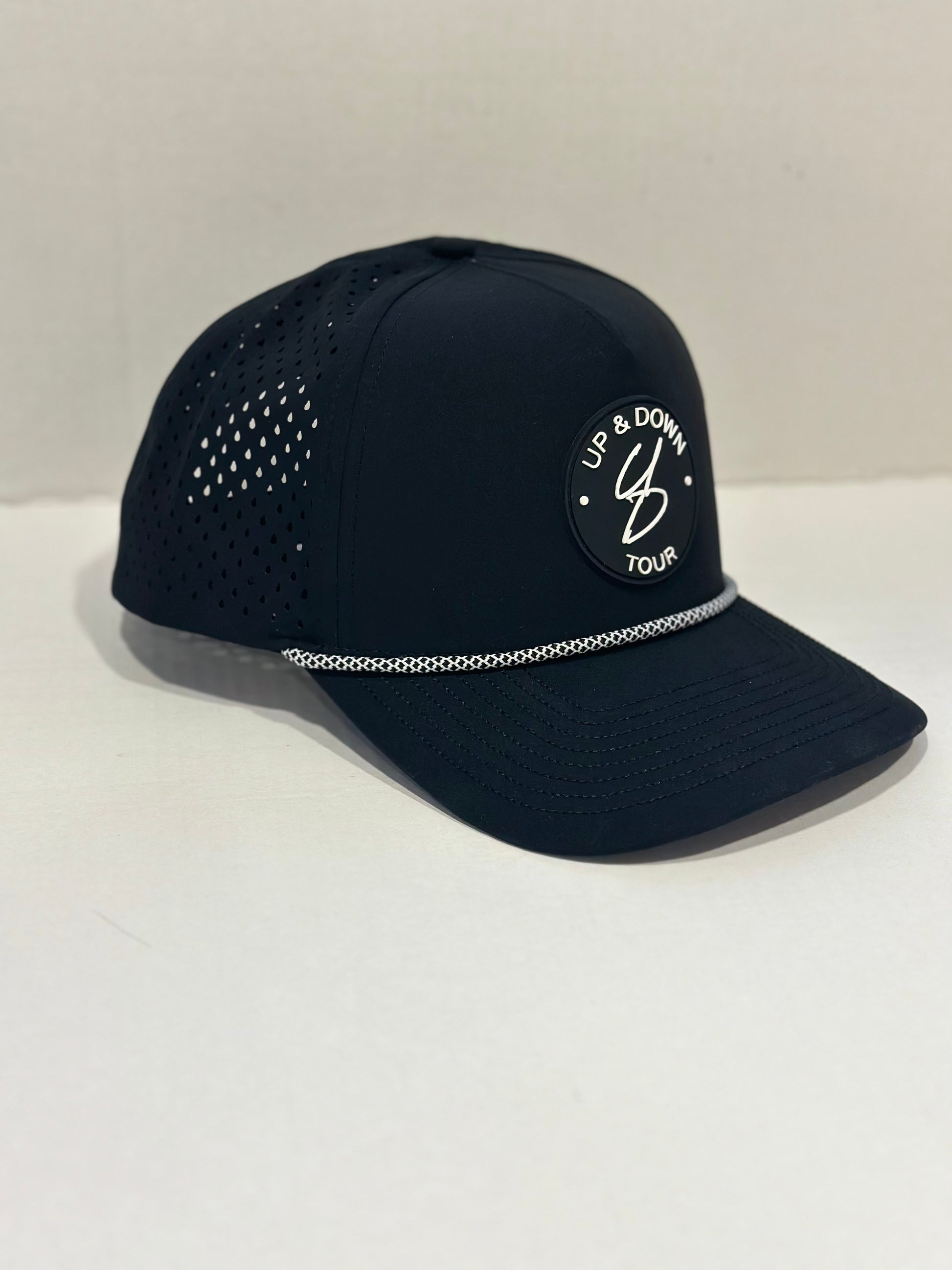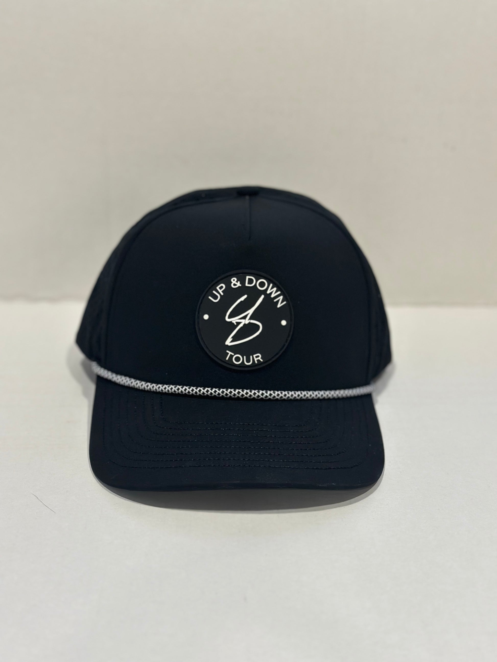 Classic. Confident. The black and white 5-panel snapback is the golfer's go-to for a sleek, understated look with all-weather performance. Waterproof fabric keeps you dry when conditions turn, and the structured design delivers all-day comfort without distraction. Pair it with any fit - this versatile lid is as steady as your short game. Or at least as steady as your short game "should" be.