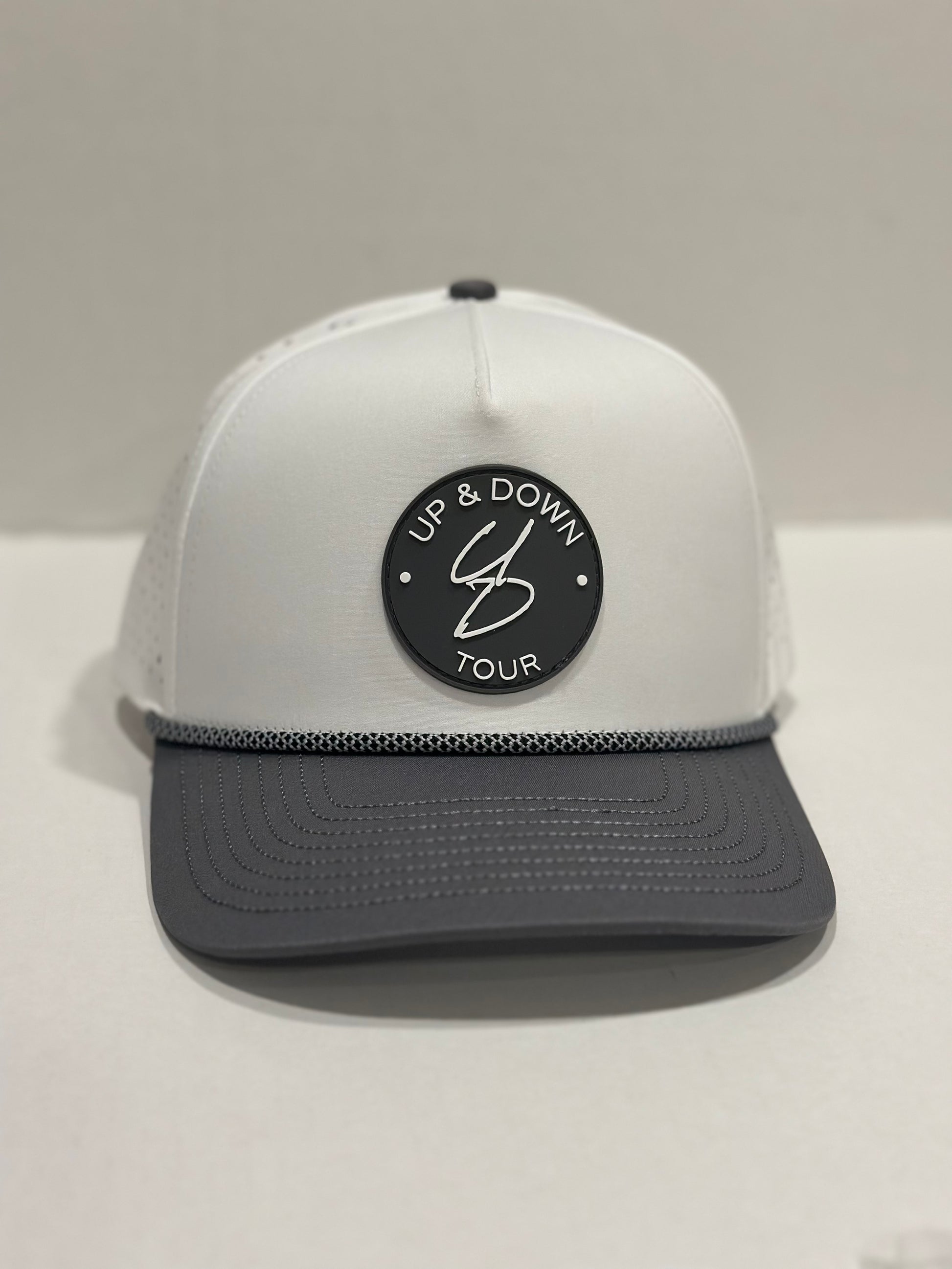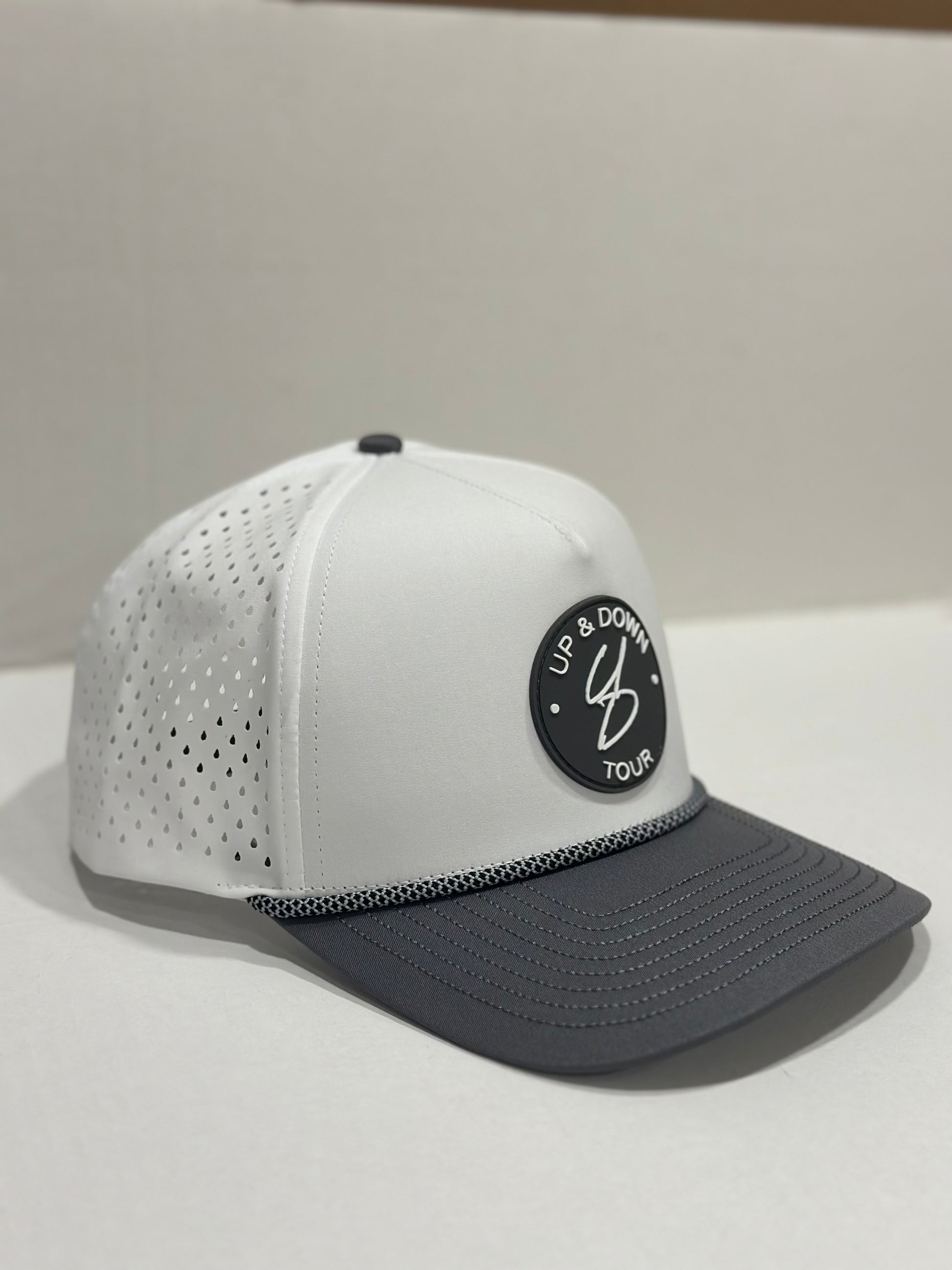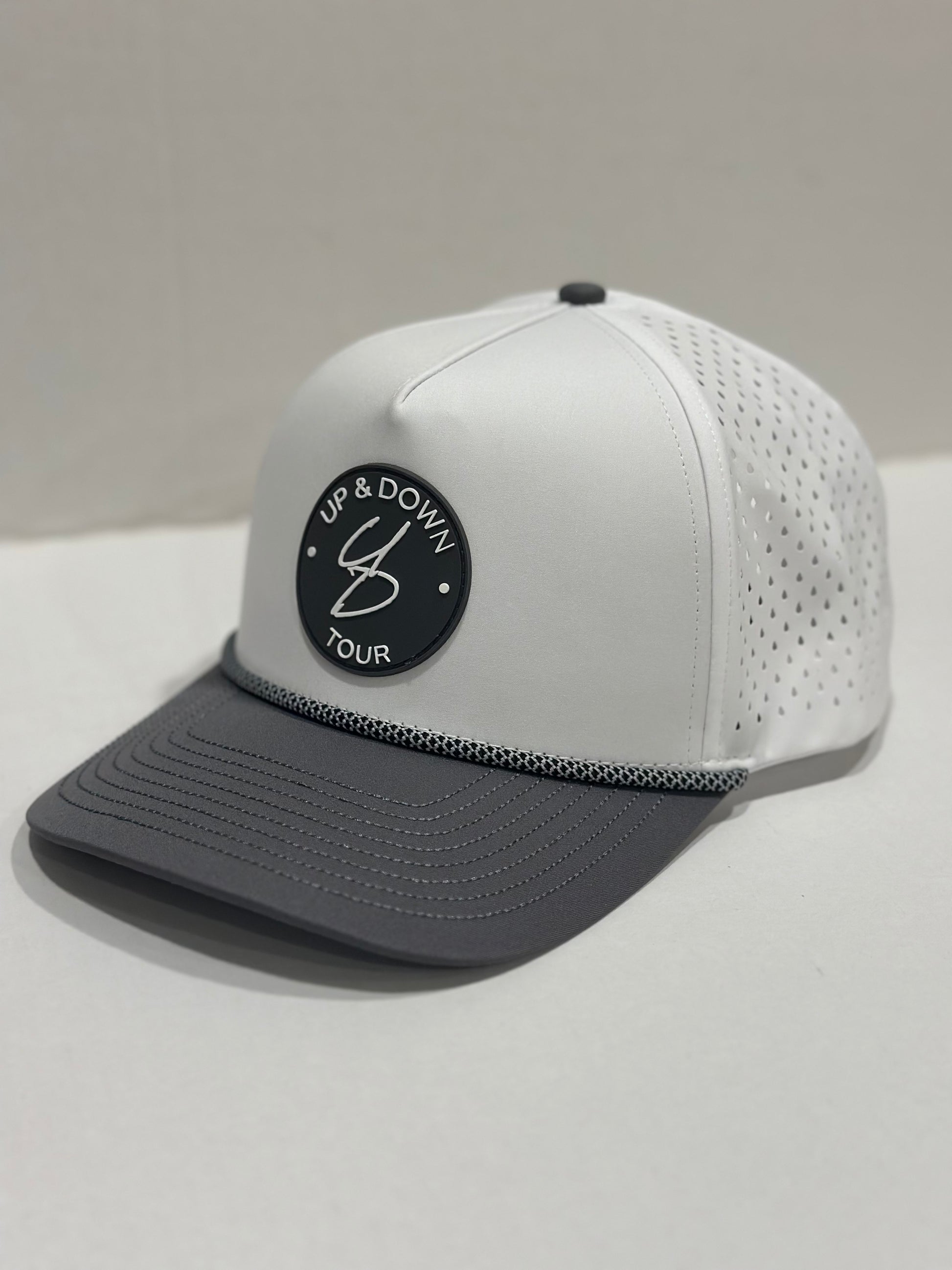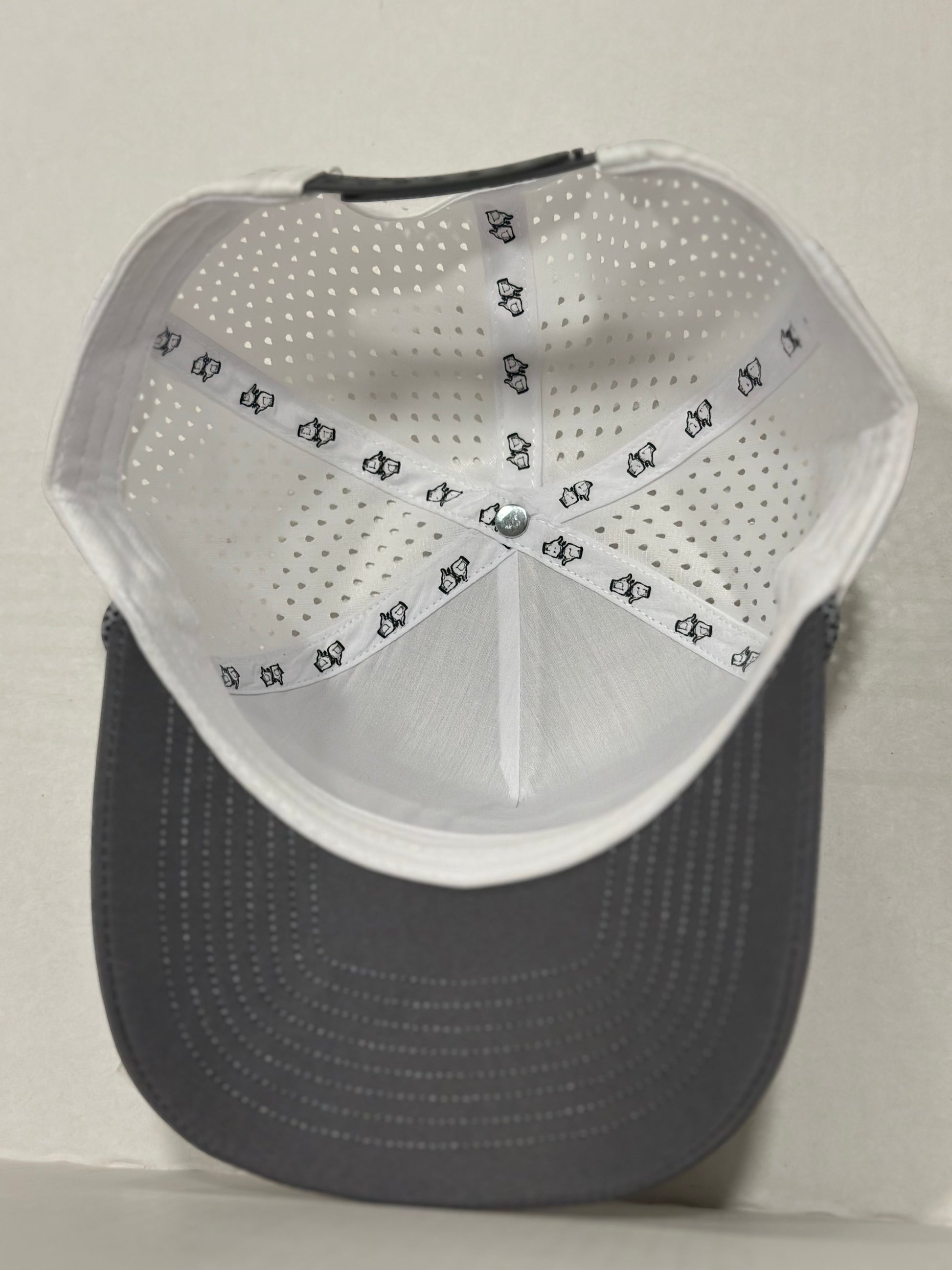 Cool, neutral, and effortlessly sharp. The grey and white 5-panel snapback is designed for golfers who like to keep things low-key but dialed in. Its waterproof build stands up to misty mornings, while the breathable panels and snapback closure keep you comfortable from the first drive to the final putt. A clean, modern essential for the course and beyond.